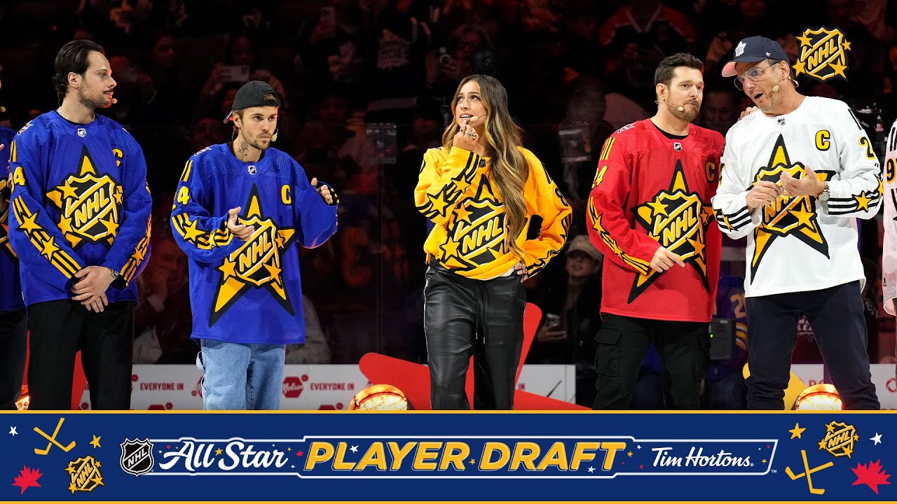 See the complete 2024 NHL All-Star Gamer Draft featuring the NHL’s finest and stars Justin Bieber, Michael Bublé, Will Arnett and Tate McRae