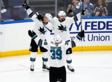 Erik Karlsson receives Gustav Nyquist’s feed and defeats Jordan Binnington for his second goal, giving the San Jose Sharks a 5-4 win in overtime For the most up