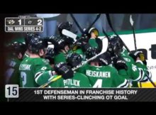 The Stars advancement to Round 2 and also eliminate the Predators with an overtime win that finishes with a John Klingberg goal. Goaltender Ben Bishop saves 47 shots