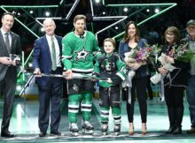 Prior to taking the ice versus the Red Wings, destiny invite Joe Pavelski and also his family to center ice to provide him with numerous gifts, including a